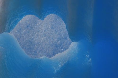 积雪变成粒雪后,随着时间的推移,粒雪的硬度和它们之间的紧密度不断增加,大大小小的粒雪相互挤压,紧密地镶嵌在一起,其间的孔隙不断缩小,以致消失,雪层的亮度和透明度逐渐减弱,一些空气也被封闭在里面,这样就形成了冰川冰。粒雪化和密实化过程在接近融点的温度下,进行很快;在负低温下,进行缓慢。冰川冰最初形成时是乳白色的,经过漫长的岁月,冰川冰变得更加致密坚硬,里面的气泡也逐渐减少,慢慢地变成晶莹透彻,带有蓝色的水晶一样的老冰川冰。 [2]