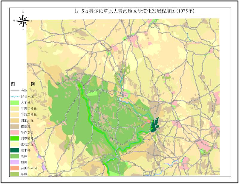 该数据数字化自图纸,科尔沁草原大清沟地区沙漠化发展程度图(1975年)