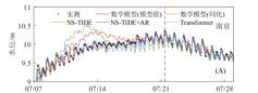 基于2019-2020年期间大通流量数据、站点潮位数据、河口六滧风速、气压数据,分别非稳态调和分析模型(NS_TIDE)、非稳态调和分析与自回归误差修正(NS_TIDE+AR)组合方法、Transformer深度学习模型、水动力学模型、水动力模型结合集合卡尔曼滤波同化方法分别建立长江...