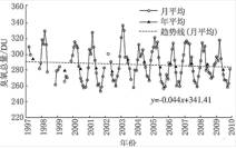 1993-1995,1997-2010年青海瓦里关臭氧柱总量月均值