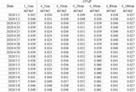 )、△T/△e、波文比、8厘米土壤热通量1(W/mm)、8厘米热流板土壤热通量2(W/mm)、净辐射(W/m*m)、Rn-G、潜热通量、显热通量、ET。