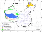 该图是Li Xin等2008年为了重新统计中国的多年冻土面积,在分析现有中国冻土图的基础上编制而成的,由三部分组成,其中青藏高原部分采用模拟的青藏高原冻土图(南卓铜,2002)、东北