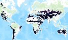 全球1:100万人口75万和90万之间的分布图(2013年)