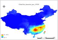 ChinaClim_timeseries 包含中国 1952-2019 年期间的逐月最高气温数据集,空间分辨率为 1km,该数据是基于气候学辅助插值(CAI)将月度异常面和基线气候学面(ChinaClim_baseline)叠加生成的。数据的比例因子为 0.1。