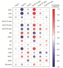 中国新疆阿尔泰山南麓典型草地生态系统绣线菊灌木叶片和土壤碳氮磷化学计量特征