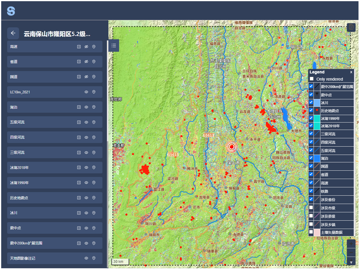 国家冰川冻土沙漠科学数据中心(以下简称数据中心)根据灾情,收集、制备基础地理数据、卫星遥感数据、人口数据、地形等应急响应科学数据。截止目前已开放提供46个服务数据集,服务数据量153.93GB。已发布“云南保山市隆阳区5.2级地震(20230502)科学数据应急响应服务”系统,系统提供数据的可视化展示、互操作以及数据下载功能。供相关应急、救援和研究部门使用。
