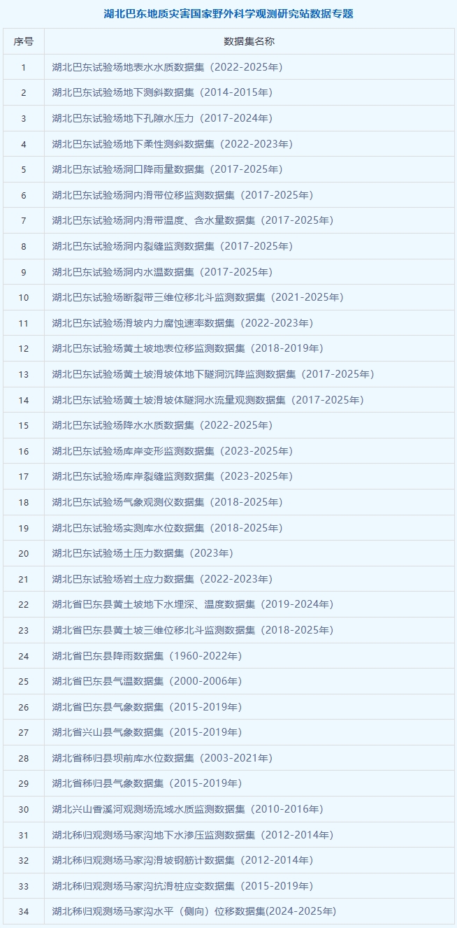 近日,由湖北巴东地质灾害国家野外科学观测研究站提供的观测数据专题,正式在国家冰川冻土沙漠科学数据中心发布,欢迎广大科研工作者下载使用。