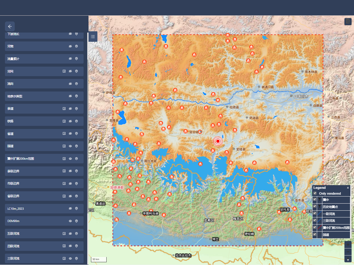 国家冰川冻土沙漠科学数据中心(以下简称数据中心)根据灾情,收集、制备基础地理数据、卫星遥感数据、人口数据、地形等应急响应科学数据。截止目前已开放提供26个服务数据集,服务数据量约65GB。已发布“西藏日喀则市定日县6.8级地震(20250107)科学数据应急响应服务”系统,系统提供数据的可视化展示、互操作以及数据下载功能。供相关应急、救援和研究部门使用。