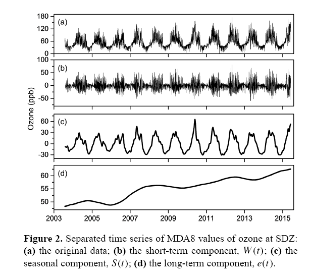 通过对上甸子站观测的2003~2015年的近地面臭氧(O3)变化趋势的分析,结果表明:短期变化、季节变化和长期变化分别占了臭氧变率的36.4%、57.6%和2.2%。长期变化趋势表明最大8小时日平均臭氧值在2003~2015年期间有比较明显的上升趋势,平均增长率为1.13±ppb year-1。同时也发现气象因子对臭氧的长期变化的影响较小,臭氧的增长主要是由排放改变造成的。而且,臭氧和二氧化碳(NO2)的长期变化趋势之间没有明显的相关性。由于臭氧与空气污染关系密切,特别是夏季,因此关注京津冀区域的臭氧变化对空气污染应对等都具有重要的作用。